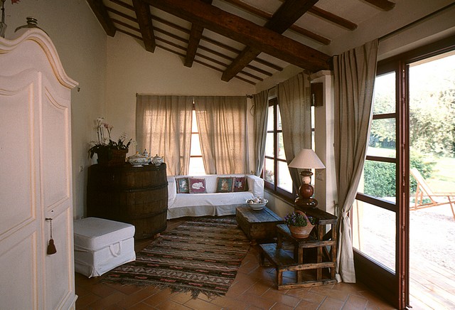 Alle Fussböden des Hauses sind mit hochwertigen Terrakotta-Fliesen verlegt, und Holzbalken schmücken die Decken. Das Mobiliar besteht teilweise noch aus echten antiken Möbeln. Dies gibt dem Ferienhaus bei Osimo einen bezaubernden Charakter.