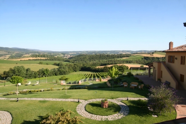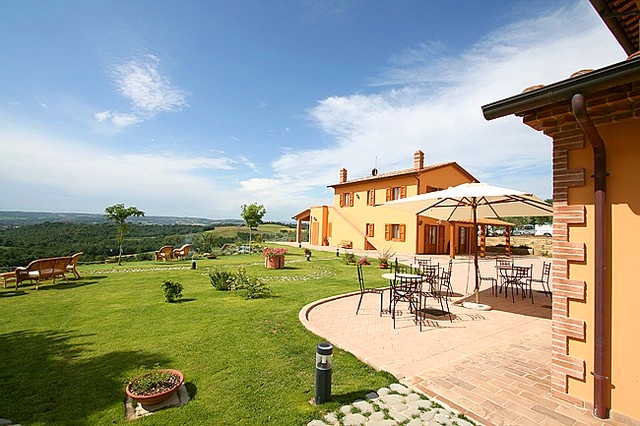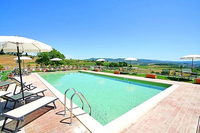 In der gepflegten Gartenanlage finden sich viele gemütliche Sitzmöglichkeiten, ein großer Swimmingpool in traumhafter Panoramalage sowie eine atemberaubende Rundumsicht. Das Bauernhaus befindet sich inmitten eigener Olivenhaine ganz ruhig gelegen und mit Aussicht auf Weinberge sowie die hügelige Landschaft Umbriens und der Toskana.