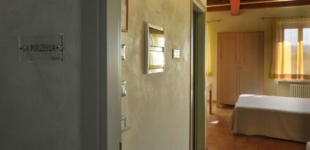Polzella nennt man einen Landstrich, der sich vor der Stadt Montefalco befindet. Nur wenige Kilometer vom Landhaus entfernt befindet sich die Kreuzung zur Polzella , gekennzeichnet durch den Schrein der Madonna della Stella, aus der Mitte des zwanzigsten Jahrhunderts. Das Ein Zimmer Studio befindet sich im ersten Stockwerk und eignet sich hervorragend für zwei Personen. Das Studio besteht aus einem Doppelbett und einem Badezimmer mit Dusche. Das Zimmer ist ebenfalls mit einer kleinen Küchenzeile sowie einem Esstisch und Stühlen (wie in Appartement Le Coste beschrieben) ausgestattet. Ferner kann das Appartement mit dem Appartement Maderno verbunden werden und wird somit zu einem drei Zimmer Appartement. Das Appartement verfügt über eine individuell einstellbare Klimaanlage.