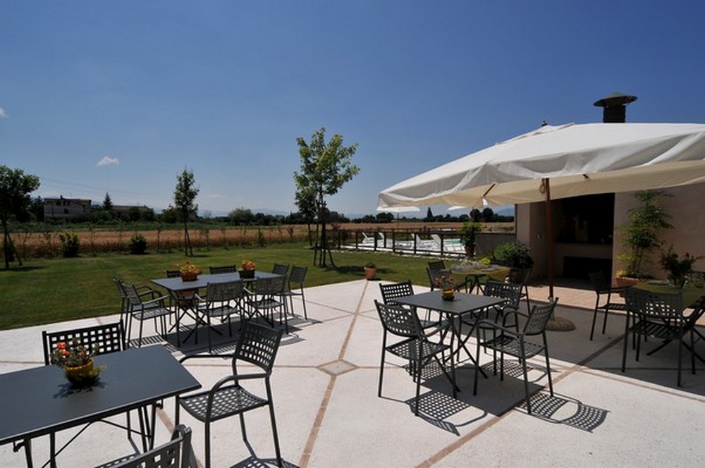 Mittelpunkt der grünen Oase ist ein herrlich großer Salzwasserpool, der zum Relaxen, schwimmen und entspannen einlädt. Eine große und mit vielen Stühlen und Tischen ausgestattete Terrasse bietet eine traumhafte Aussicht auf die umliegende Umgebung, und das magische Grün Umbriens.