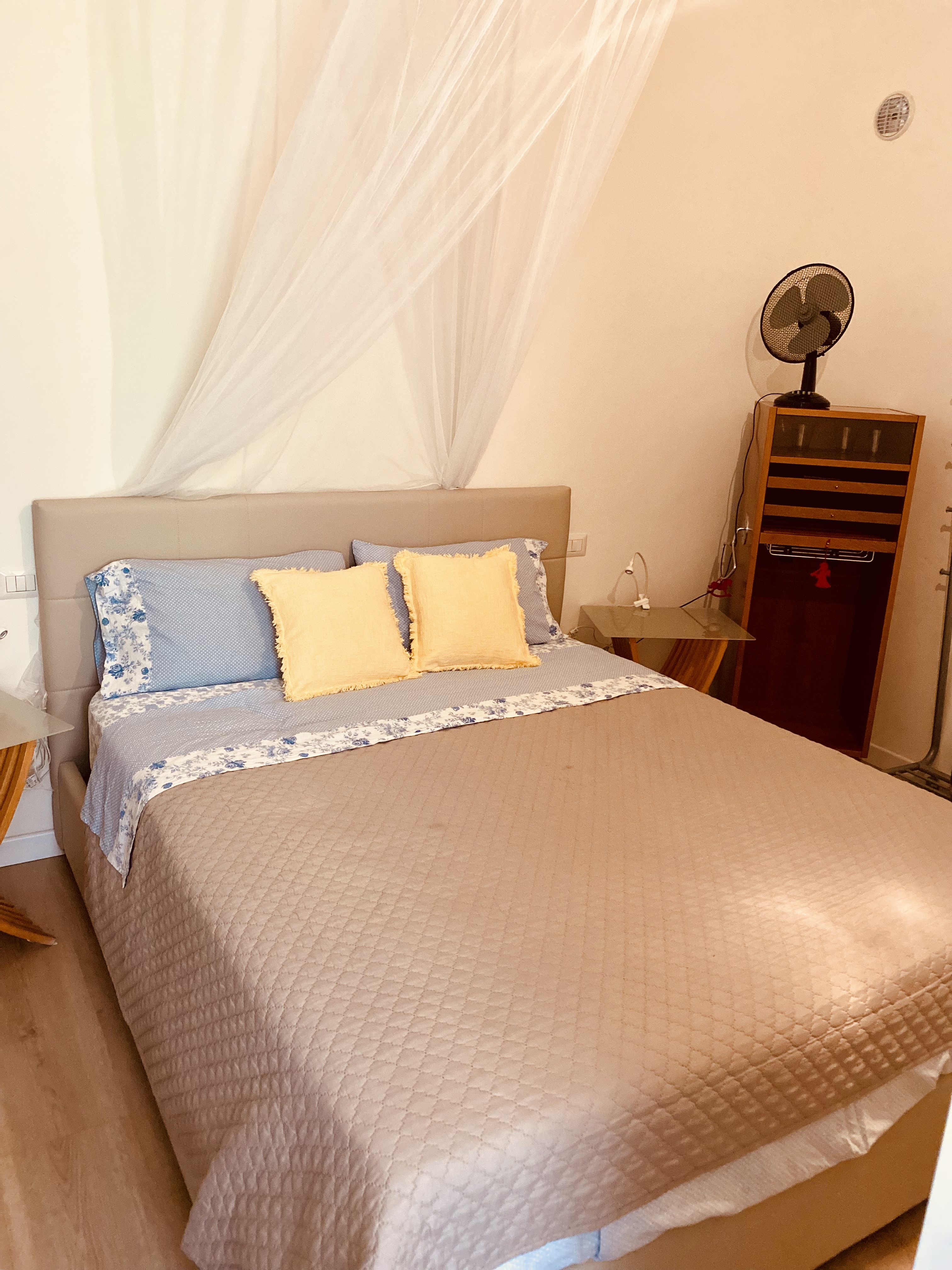 Anstelle einer Klimaanlage gibts Vintage Ventilatoren in den Zimmern. Alle Fenster verfügen über Fliegengitter & alle Betten verfügen über Moskitonetze. Ein Highlight der Wohnung ist definitiv die Terrassen-Lounge, auf der gegessen und gechilled werden darf.