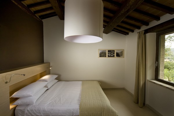 Das Naturhotel verfügt über geräumige Zimmer, die hochwertig ausgestattet sind. Ein warmes beruhigendes Farbkonzept, echte Holzmöbel, Fußbodenheizung, Minibar, Safe sowie ein modernes Luxusbad alles unter einer romantischen Balkendecke vereint Komfort und Luxus zugleich. Der Komfort gehört zu den schönsten Seiten dieses traumhaften Naturhotels in Umbrien.