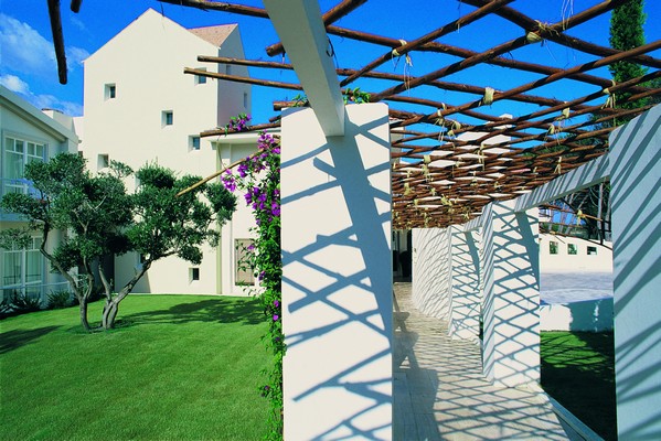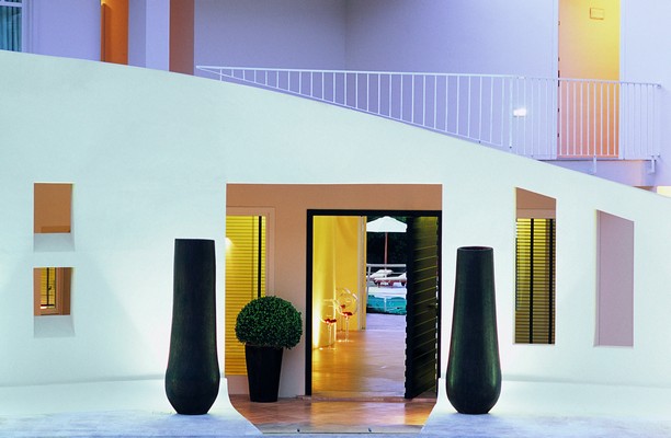 Die Hotelanlage ist wellenförmig angelegt und passt sich harmonisch in die Umgebung an. Farbkontraste schmeicheln dem Gebäude und betonen den außergewöhnlichen Stil dieser grandiosen Anlage. Zentrale Punkt ist die faszinierende Terrasse, von der man einen fantastischen Blick auf das Meer und den Außenpool genießt.